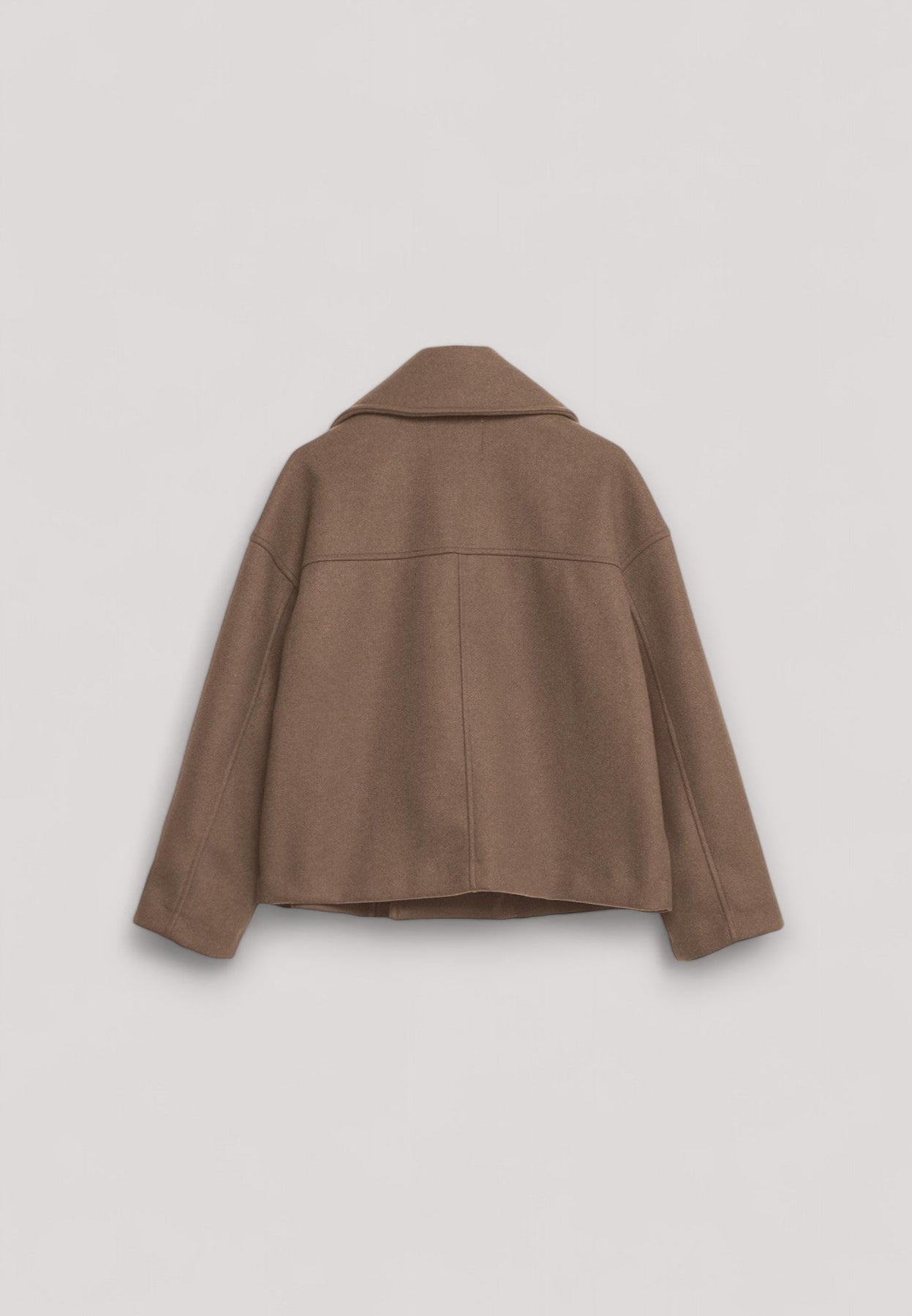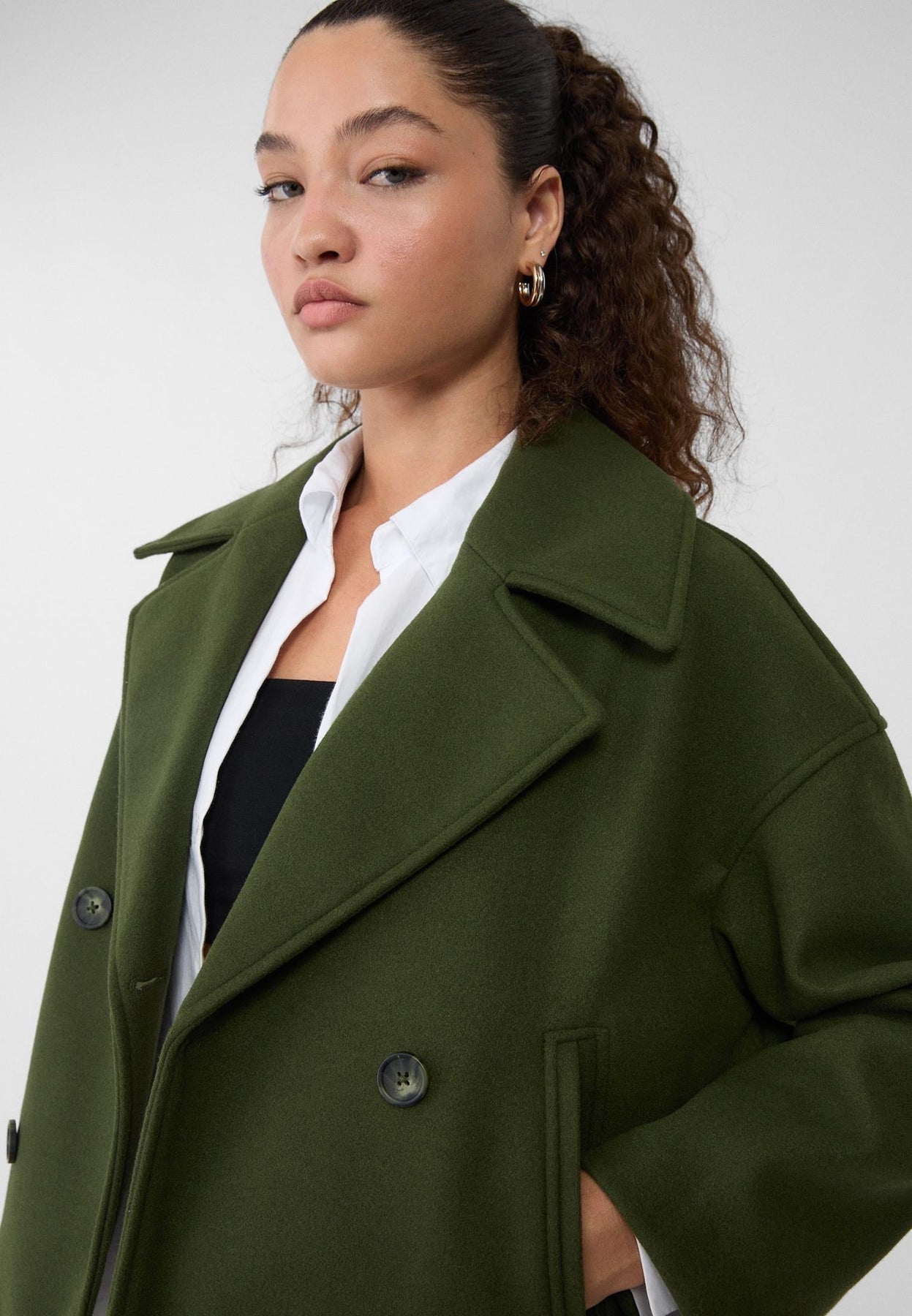 Wickeln Sie sich in gemütliche Eleganz mit diesem weichen Mantel aus Wollmischung. Sein doppelreihiges Design und die weiten Revers schaffen einen gepflegten Look, der jedes Outfit aufwertet. Tiefe Seitentaschen bieten praktischen Charme, ideal um Ihre Hände warm zu halten oder wichtige Kleinigkeiten zu verstauen.
