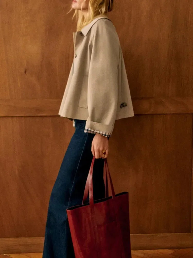 Stilvolle Baumwolljacke mit weitem Bund für Damen – Lässig & Bequem