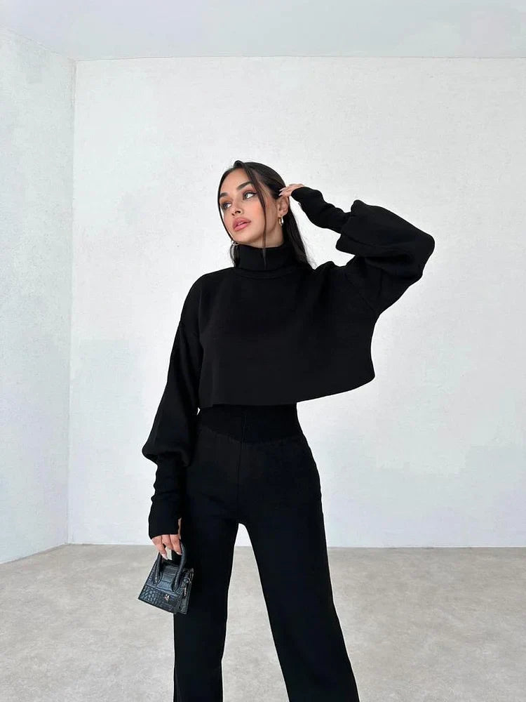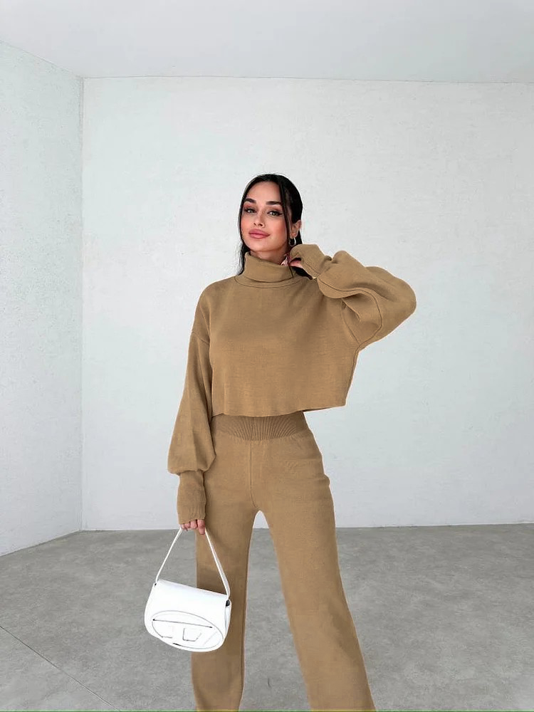 Gemütliches Set aus Strickhandschuhen mit Rollkragen